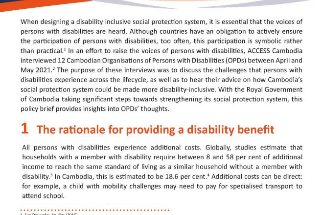 This report presents an analysis of the challenges faced by persons with disabilities across Cambodia, with a particular focus on income security.